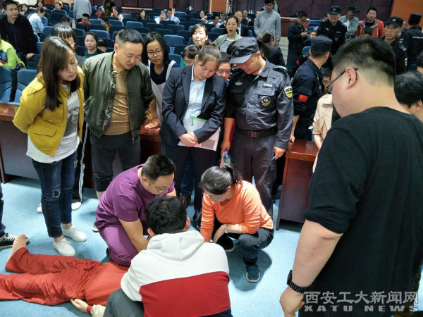 (本网讯)为了贯彻落实“师生健康,中国健康”健康教育主题活动,提高广大教职工面对突发事件和意外伤害的应急意识,提高自救互救能力,418日,校医院特邀西安市第三医院急诊科医师开展急救知识和急救技能培训。
