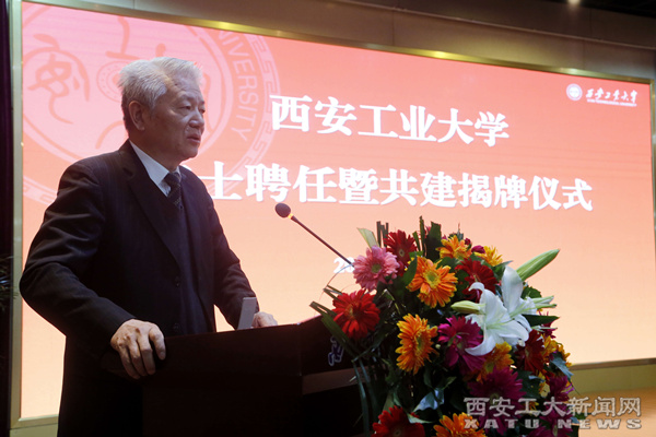 西安工业大学党委书记刘卫国致欢迎词。他说,芮筱亭院士受聘名誉院长暨兵器科学与技术学院、西北兵工科教创新中心成立,是一件具有重要意义的大事,它标志着我校在“兵工”特色的发展道路上又迈出了坚实的一步。刘卫国说,共建兵器科学与技术学院、西北兵工科教创新中心是学校当前深化“兵工”办学特色,推进一流学科建设,融入国家“军民融合”发展战略的重要举措。作为共建方之一,学校也将为芮筱亭院士在校开展科研工作提供有力保障,为兵器科学与技术学院、西北兵工科教创新中心的发展壮大给予全力支持。