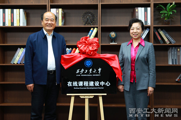 揭牌仪式上,刘建林与雷亚萍共同为西安工业大学在线课程建设中心揭牌。