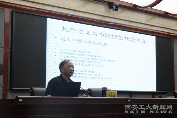 开班仪式结束后,教育部教指委研究生分教指委副主任委员,西安交通大学二级教授王宏波作了题为《人生与信仰》的首场理论授课。他从信念与信仰、逆境与信仰、信念与磨练、信念的作用与基础和共产主义和中国特色社会主义等多个方面进行阐释,整场报告理论深刻、内容丰富,全体学员深受教育和启发。