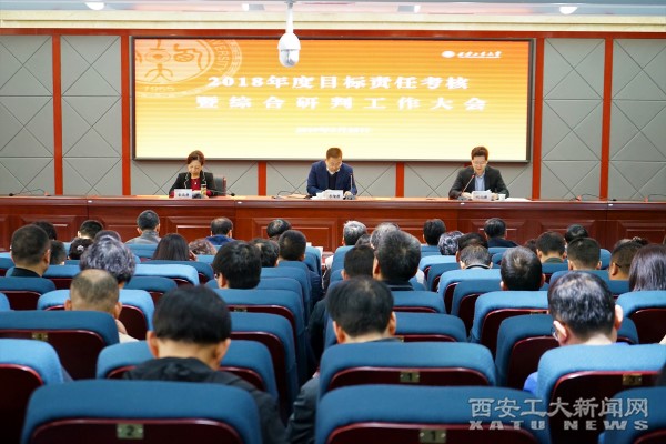 (本网讯)3月25日,我校在未央校区学术报告厅召开领导班子和领导人员2018年度目标责任考核暨综合研判工作大会。以省委教育工委副书记李智军为组长的省属高校领导班子和领导干部目标考核暨综合研判第二工作组成员出席会议。会议由党委书记刘卫国主持。