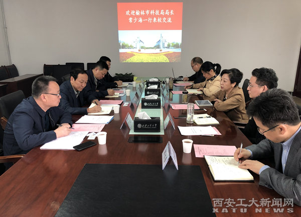 (本网讯)3月19日,榆林市科技局局长常少海、副局长艾小斐等一行4人来我校进行产学研合作交流,重点就榆林市政府、西安工业大学、榆林学院三方共建“镁、铝合金深加工技术研究院(暂定)”进行了座谈。校长雷亚萍出席。