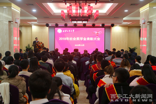 吴介军宣读了社会奖学金表彰决定。今年我校社会奖学金奖项增至19项,创历史新高,共有447名本科生、研究生获此殊荣。