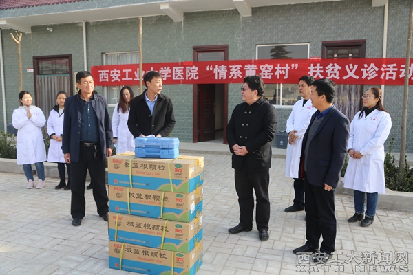 于孟晨、刘发林一行来到黄窑村委会,带队西安工业大学校医院开展“情系黄窑村”扶贫义诊活动,为黄窑村送去了价值三千余元的药品和医疗器械。本次扶贫义诊活动由我校十名医师组成,有内科、外科、中医科、健康管理四个科室,专为黄窑村贫困户65岁以上老人约60人进行健康体检,体检内容涵盖B超、血糖、超声、心电图等全方位项目。