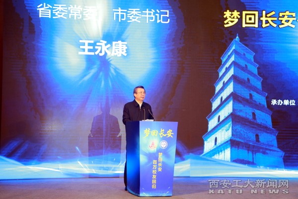 王永康在讲话中指出,西安工业大学是西北地区唯一的兵工本科院校,63年来,始终传承“把一切献给党”的兵工精神,为国家和地方建设作出了重要贡献。西安愿与西安工业大学及校友成为最佳合作伙伴,探索“产、学、研、用、政、金”全价值链模式,推动校地联动、军民融合创新发展。