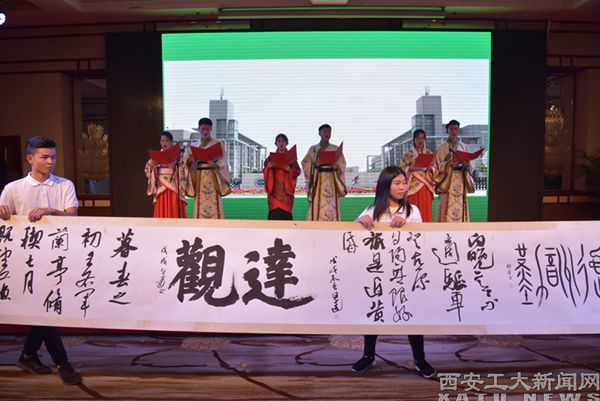 (本网讯)2018年11月9日,为了庆祝西安工业大学书法学专业招生十五周年暨中国书法学院成立一周年,中国书法学院举行了“正是长安好风景 落花时节又逢君”为主题的庆典晚会。陕西省教育厅副巡视员孙建宁、西安工业大学党委书记刘卫国、校长雷亚萍、副校长赵红星、副校长陈桦、副校长刘卜出席。