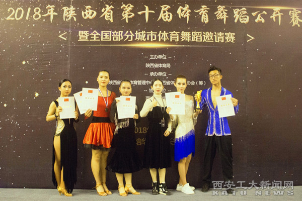 (本网讯)10月27日, 在陕西省体育局主办,陕西省社会体育管理中心、陕西省体育舞蹈协会(筹)承办的“2018年陕西省第十届体育舞蹈公开赛暨全国部分城市体育舞蹈邀请赛”上,我校体育舞蹈队斩获佳绩。