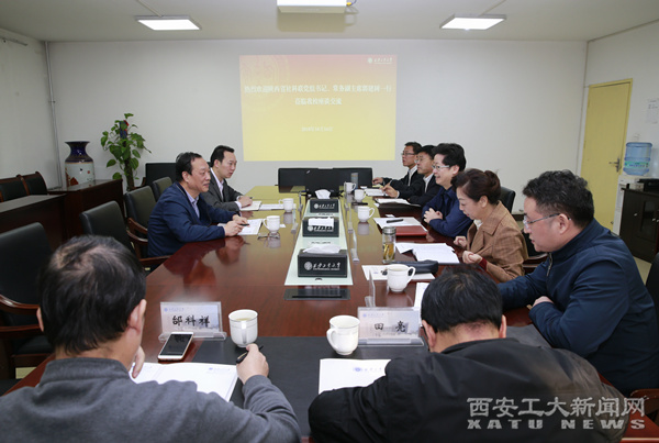 (本网讯)2018年10月16日,陕西省社科联党组书记、常务副主席郭建树、办公室副主任翟金荣莅临我校调研哲学社会科学工作。校党委书记刘卫国、校长雷亚萍在行政楼二楼会议室会见了来访客人,党办校办、科技处、经管学院、人文学院、马克思主义学院负责人参加了会议。会议由刘卫国主持。