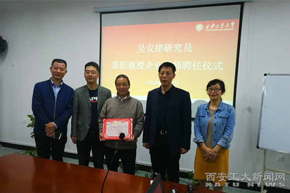 报告会后,副校长任海鹏向吴安律颁发了西安工业大学西北兵器工业研究院兼职教授聘书以及企业导师聘书,希望吴研究员能够长期与我校合作,用技术前沿和实践经验指导我校兵器科学与技术学科硕士研究生,开阔学生学术视野。