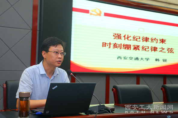 讲一次纪律教育党课,明确纪律要求,强化纪律意识。近期,校领导分别到所在支部讲授了纪律教育党课。9月12日,学校邀请西安交通大学马克思主义学院韩锐副教授作了题为“强化纪律约束,时刻绷紧纪律之弦”的纪律教育专题党课,校领导,全校处级干部、党支部书记共200余人参加。各基层党委负责人按照要求,分别在班子范围内开展了一次纪律教育课。