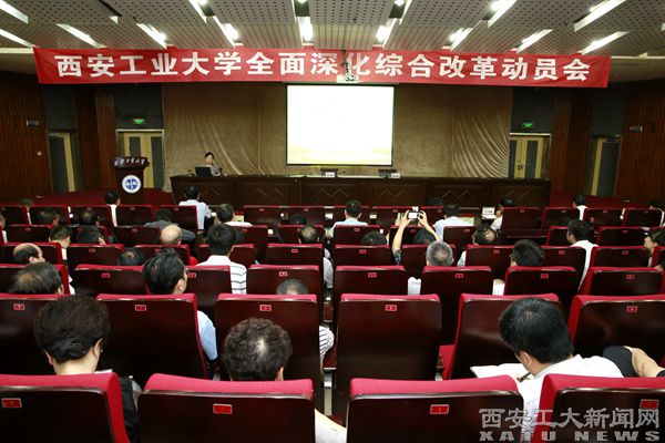 (本网讯)7 月12日,我校在图书馆报告厅召开全面深化综合改革动员会。党委书记刘卫国作重要讲话,校长雷亚萍作全面深化综合改革的动员报告。副校长刘卜主持会议。