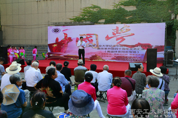 (本网讯)6月12日,随着《南湖的船,党的摇篮》抒情整齐歌声的开场,“中国梦”西安工业大学庆祝中国共产党成立97周年暨改革开放40周年离退休老同志专场文艺汇演在我校金花校区成功举办。校党委书记刘卫国到场并致辞。