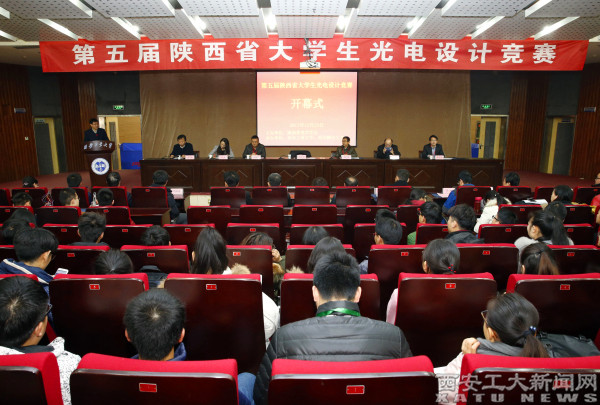 (本网讯)12月23日,第五届陕西省大学生光电设计竞赛在我校未央校区顺利举行。本届竞赛由陕西省光学学会主办、我校承办。校党委副书记吴介军出席并致欢迎词。西北工业大学杨德兴教授,中国飞行试验研究院吴衡主任,西安交通大学张淳民教授,我校光电工程学院党委书记弥谦教授、副院长蔡长龙教授等专家委员会成员出席开幕式。开幕式由光电学院院长高明教授主持。