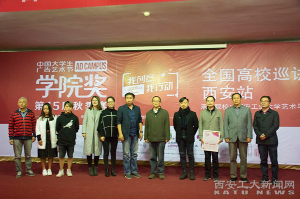 作为第十五届学院奖秋季赛的西安站巡讲承办方,我校艺术与传媒学院高度重视,号召全院师生积极参与,并为活动提供全程支持。为感谢学校对学院奖的大力支持,广告人文化集团副总裁李建强代表组委会向我校艺术与传媒学院现场颁发了“年度广告教育推动奖”,院长王若鸿代表学院领取奖状。