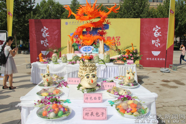 活动期间,“三秦”套餐、过桥米线、广式烧腊、新疆拌面……来自天南海北的各式美味汇聚一堂,为师生们送上“最美味的福利”。活动通过厨艺秀、互动体验、试吃等多个环节,让大学生们真切感受“家”的味道。本次“家味”美食文化节在未央校区和金花校区同时开展,各校区食堂的厨师们以精湛的厨艺和饱满的热情呈现美食,其中《龙腾四海》《孔雀迎宾》《吉祥礼炮》《招宾瓜盅》《龙凤呈祥》等食雕作品尽展厨师刀工;《造型狸老虎》《特色面塑》表现面食的别样魅力;蒸菜、烤肉饭、凉皮、泡馍、大馄饨、麻辣拌等等美食拼做的成盘则让师生们感受到了食物的设计之美。