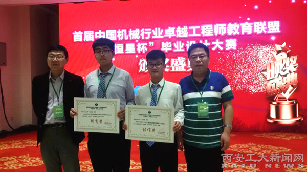 (本网讯)5月19至20日,首届中国机械行业卓越工程师教育联盟“恒星杯”毕业设计大赛决赛在大连理工大学举行,我校机电学院2013级学生李延璘和张文朋的毕业设计作品分获“优秀奖”和“佳作奖”的优异成绩。