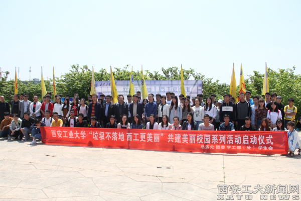 (本网讯)为响应西安市委提出的“烟头不落地 西安更美丽”,并结合今年爱国卫生月主题“历史与展望—为了人民健康的65年”。4月28日,我校团委、总务处、学工部(处)以及学生会共同举办了“垃圾不落地 西工更美丽”共建美丽校园系列活动启动仪式,校党委副书记吴介军出席。