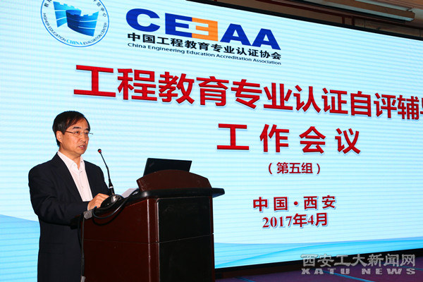 (本网讯)4月7日,由教育部高等教育教学评估中心、中国工程教育专业认证协会主办,我校承办的“2017年工程教育认证专业自评辅导工作会议(第五组)”在西安举行。副校长赵红星、校长助理李强出席会议,会议由教育部高等教育教学评估中心认证处处长张勇主持。来自天津大学、上海理工大学、西南大学、汕头大学等27所高校的近200名代表参加了会议。