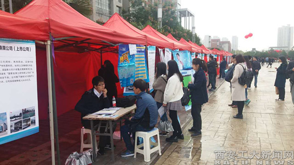 (本网讯)10月24日,2016年浙江省台州市——西安工业大学专场校园招聘会圆满举行。本次招聘会由中共台州市委、台州市人民政府主办,陕西省人才交流服务中心、西安工业大学大学生就业指导服务中心协办,来自台州市的水晶光电、海正药业、信质电机等91家企业来我校招贤纳士,提供超过2000个就业岗位供学生选择。