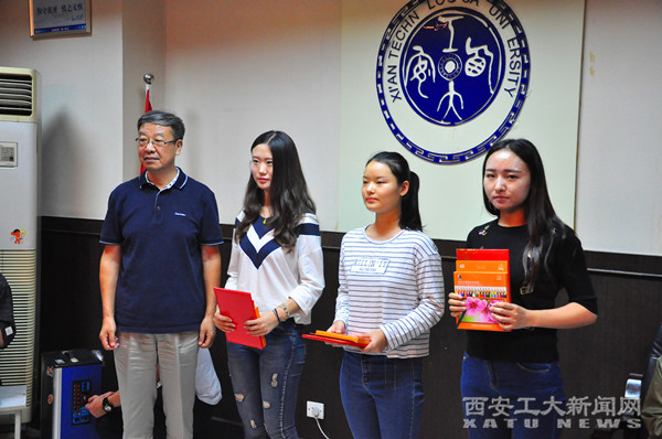 随后,离退休工作处副处长刘晓光宣读了对“西安工业大学2016年度爱心助老优秀志愿者”叶赛雯、焦杨、张丽云三位同学的表彰决定,刘建勋为她们颁奖。