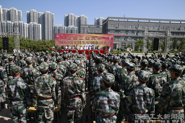 (本网讯)9月2日,西安工业大学军训动员大会在经纬广场隆重召开。副校长赵红星、刘发林,承训部队张有斌中校,以及相关部门负责人出席会议。全体2016级参训新生参加了动员大会。