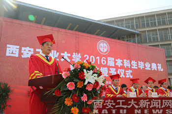 (本网讯)7月4日上午,西安工大2016届学生毕业典礼暨学位授予仪式在未央校区经纬广场隆重举行。校党委书记苗润才,校长刘卫国,校党委副书记于孟晨、纪委书记许尚年,副校长赵红星、张君安、刘建勋、陈桦、刘发林,总会计师段小存出席仪式。党办校办、学生处、教务处、团委、国际交流处等部门和各学院党政领导以及教师代表、学生代表、家长代表参加了仪式。毕业典礼由党办校办主任王辉强主持。