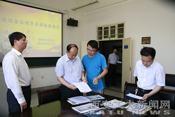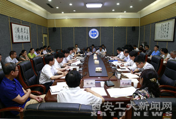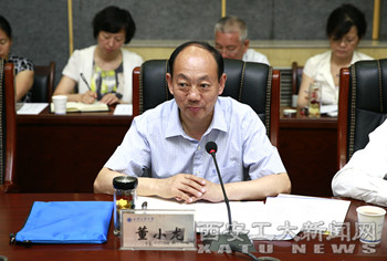 (本网讯)6月17日,陕西省委高教工委书记董小龙、办公室主任柯昌万、组织部副部长许文学等一行莅临我校,对学校“两学一做”学习教育开展情况进行调研并召开座谈会。校党委书记苗润才,校长刘卫国,党委副书记于孟晨,纪委书记许尚年,副校长赵红星、张君安、刘建勋、雷亚萍、陈桦、刘发林,总会计师段小存出席。