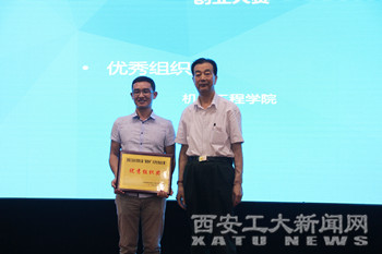 学生工作部(处)长李建安宣读了表彰决定。大会分别对校第九届“探索杯”大学生创业大赛的18个获奖团队,以及我校参加2016年西安高新“创青春”陕西省大学生创业大赛的7个获奖团队进行了表彰,并向优秀组织单位机电学院团委颁发了奖牌。