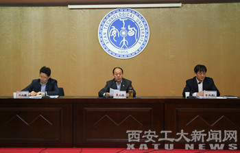 上午九时,校级领导班子和领导干部2015年度目标责任考核暨综合研判工作大会在未央校区报告厅召开,董小龙同志及工作组全体成员出席。学校领导班子全体成员参加了考核会。会议由校党委书记苗润才主持。