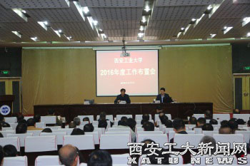 (本网讯)阳春三月东风劲 扬帆远航正当时。3月11日,我校在未央校区图书馆报告厅召开了2016年工作布置会议。校党委书记苗润才做重要讲话,校长刘卫国部署2016年学校主要工作。校纪委书记许尚年,副校长赵红星、张君安、刘建勋、雷亚萍、陈桦,总会计师段小存出席会议。大会由校党委副书记丁养斌主持。