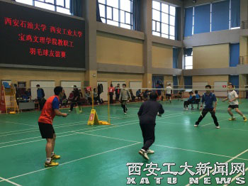 (本网讯)1月9日,西安工业大学、宝鸡文理学院、西安石油大学三所高校教职工羽毛球友谊赛在宝鸡文理学院东校区体育馆举行。