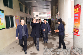 何文一行首先视察了附中金花校区高中部新校区,听取了新校区的建设情况以及校园文化设计理念,为学校的进一步建设发展提出了宝贵的意见。在视察伞塔校区的过程中,何文对学校发掘潜力,令校容、校貌发生显著变化的开拓进取的精神给予了肯定,他鼓励学校要把亮点办成特色,不断探索教育教学新方法、新途径,走出一条属于自己的精品化发展之路。