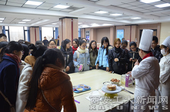 在当天的交流中,师生们在工作人员的引导下首先参观了八大工艺流程窗口,并在御品轩生产中心副总监、国家级高级技师刘向阳的展示下了解了企业、品牌、产品在工艺、用料以及质量管理方面的严格和精致,此后,御品轩市场部经理王春宁和观光文化部经理李欢与师生们就企业文化、市场定位、定价策略、渠道与配送体系及O2O营销等方面进行了深入交流。