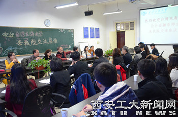 下午,来宾一行来到经管学院参加交流活动。宋元梁教授、相关系主任、教师代表及2014级研究生参加交流活动。宋元梁教授向来宾介绍了经管学院的发展历程等整体概况,并希望以此次访问为契机建立更好的合作空间。随后,郭一栋教授和萧慧玲教授分别介绍了东海大学的概况及财金系的建设情况,并希望在学科建设、学生培养等方面与经管学院加强合作。最后,双方教师、学生就相关研究课题,两岸文化习俗等方面进行了愉快热烈的讨论。