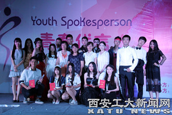 (本网讯)近日,由校团委主办、大学生艺术团承办的西安工业大学第二届“青春代言人”风采大赛决赛在博苑广场举行。经过激烈角逐,来自机电工程学院的胡浩东同学摘得了本次模特大赛的桂冠,经济管理学院的乔廷玥、奥婧分别获得亚军、季军。此外,还有最佳人气奖、最佳展现奖。总会计师段小存,校团委书记赵琼、副书记张英,校工会王小珏出席此次大赛。