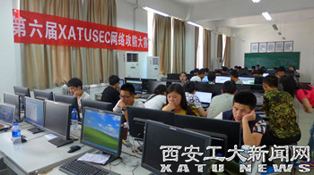 (本网讯)5月23日,由我校主办的“2015年第六届XATUSEC网络攻防大赛”在未央校区成功举行。参加本次竞赛的有来自西安电子科技大学、西安科技大学、西安财经学院行知学院、西安交通大学城市学院、西安工业大学等6所高校的26支参赛队伍,共58人。