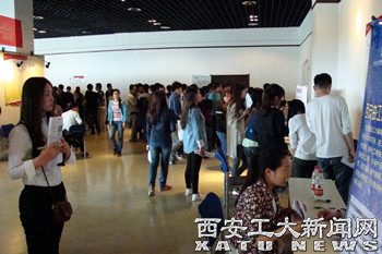 (本网讯)4月24日,由团省委志工部与我校学生处共同举办的2015年西安工业大学春季校园招聘会在我校图书馆一层举行。本次招聘会共有陕西千秋电子科技有限公司、西安西科软件技术有限公司、西安航空基地金胜通用航空有限公司等50家用人单位参会。