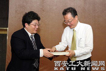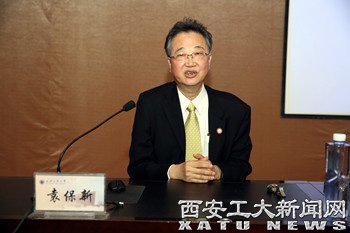 (本网讯)4月20日,台湾明新科技大学校长袁保新教授莅临我校,受邀参加学校60周年校庆活动,并在未央校区图书馆报告厅做了题为《自在与庄严--中国传统儒道思想的现代诠释》的学术报告。此次报告是我校六十周年校庆系列学术报告之一,报告会由我校科技处和港澳台办联合主办。校务委员会副主任、校党委副书记于孟晨出席了报告会并于会后向袁保新教授赠送由我校兼职教授陈忠实先生亲笔签名的著作《白鹿原》,330余名师生代表聆听了报告。