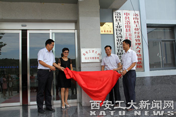 座谈会后,校团委与洛南团县委签订了大学生社会实践基地共建协议。当地党政领导陪同我校一行人前往洛南工业园区参观交流,并共同为我校大学生社会实践基地揭牌。