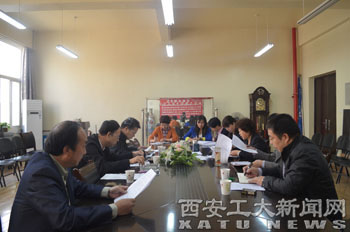 (本网讯)10月21日上午,校党委书记赛云秀来到联系点建工学院参加党政联席会议,听取党的群众路线教育实践活动意见和建议。校党委组织部部长张志昌、建工学院领导班子及总支委员参加了会议。