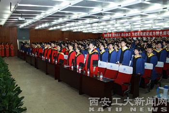 典礼上,刘卫国宣布了西安工业大学《关于授予李超良等441人硕士学位的决议》。廉振民,刘卫国依次为硕士毕业生们颁发了学位证书、拨正流苏。丁养斌宣布了2013届研究生国家奖学金获奖名单。许尚年为研究生国家奖学金获得者颁发了荣誉证书。雷亚萍宣布了《关于奖励2013届硕士研究生发表高水平学术论文的决定》。段小存宣布了2013届优秀硕士学位论文表彰决定。丁养斌为获得优秀硕士学位论文指导教师和研究生颁发了荣誉证书。电子信息工程学院王健教授、经济管理学院张洺铭同学分别代表导师和学生进行了精彩发言。