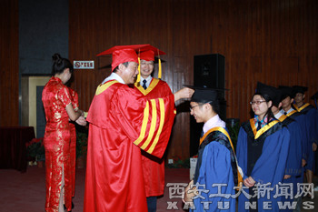 (本网讯)5月28日,2013届硕士研究生毕业典礼暨学位授予仪式在我校未央校区图书馆报告厅隆重举行。校长廉振民,党委副书记丁养斌,纪委书记许尚年,副校长刘卫国、雷亚萍,总会计师段小存出席了典礼。