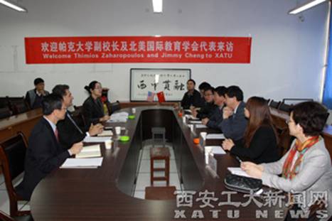 (本网讯)3月27日上午,受我校邀请,美国帕克大学主管国际教育的副校长Thimios Zaharopoulos博士和北美国际教育学会的Jimmy Cheng博士来校访问。校长廉振民教授会见了来宾一行。