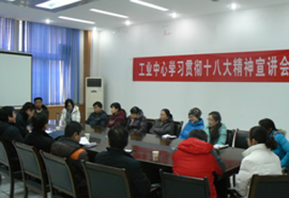 工业中心主任马保吉表示,全中心上下要广泛学习十八大文件精神,深入理解,全面解析,把握精髓;学生党员要通过班会、团课的形式向广大学生宣讲十八大精神,紧密联系专业特色,从报告中领会时代特色。并要求全体党员同志在学习实效上下苦功,多层次、多形式深入开展十八大主题学习活动,准确领会其精神实质,把学习十八大精神与工作、学习紧密结合,促进中心教育教学工作和学生管理工作再上新台阶。