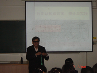 (本网讯)12月7日下午,四川外语学院外国语文研究中心教授、认知科学研究所所长、四川大学和苏州大学英语语言文学专业兼职博士生导师、中国英汉语比较研究会副会长、全国语言符号学研究会副会长、中国认知语言学研究会副会长、广东外语外贸大学外国语言学及应用语言学研究中心兼职研究员博士研究生导师王寅应邀来校做了题为“应用认知语言学:理论和实践”(Applied Cognitive Linguistics: Theory and Practice)的学术报告,外国语学院全体教师及部分学生听取了报告。
