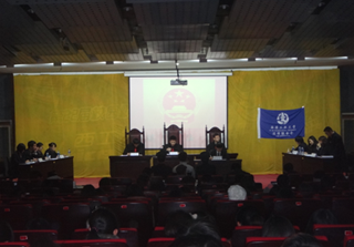(本网讯)11月28日晚,西安工业大学模拟法庭辩论赛总决赛在未央校区图书馆报告厅举行。评委及嘉宾有:省纪检委副处长唐澎涛、陕西西岳律师事务所律师汶晓斌、西安工业大学法律系03级校友暨法律联合会创始人、西安市沙坡检察院助理检察官李鹏和省监狱管理局张希、咸阳市工商局法律顾问吴小秦以及西安工大人文学院相关人员。