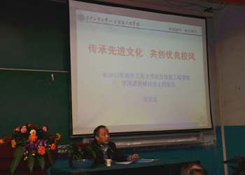 (本网讯)11月2日和3日下午,西安工业大学北方信息工程学院2012年学生工作研讨会在金花校区召开,研讨会以“精细管理,过程为重,探索服务于学生学习的学生工作思路”为主题,是北信学院第一届学生工作专项研讨会。西安工业大学副校长、北信学院董事长、院长张君安,北信学院党委书记简林根,党委副书记杨灏,副院长李建安,副院长薛虹,财务总监王培华,总务长张玮,各职能处室负责人,系主任和全体辅导员、专职教师及学生代表参加了会议。会议由薛虹副院长主持。