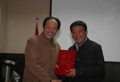 科技处处长苏俊宏向邢小利、卞寿堂、李清霞等6位首批特聘研究员颁发聘书。
