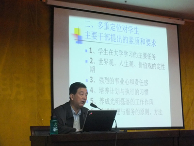 开学典礼结束后,丁养斌副书记为学员们做了关于“学生主要干部在大学的定位、作用与要求”为主题的报告,他从“学生学习与生活”,“学校与学生关系”,“学校中心工作”,“辅导老师与学生干部的关系”,“学生活动的组织”,“广大同学与学生干部的关系”以及“学校的教育”七个方面阐述了学生干部的定位与作用,从“多重定位对学生主要干部提出要求”出发,向学员们提出了六点要求与期望,同时结合大量的实例,便于学员理解与掌握。