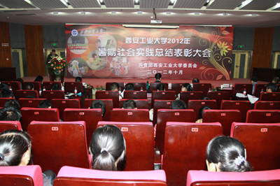 (本网讯)10月12日,西安工业大学在未央校区图书馆报告厅举行2012年暑期社会实践总结暨表彰大会。校党委副书丁养斌出席了大会,校团委书记赵琼、教务处副处长辛大新、学生处副处长杨正强以及各学院党委(总支)书记、副书记和各学院团委书记参见了大会,大会由校团委副书记张英主持。